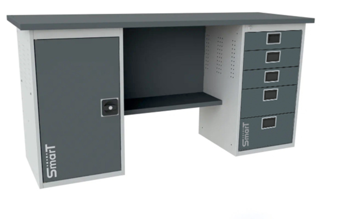 Универсальный металлический верстак серии Smart предназначен для обустройства легких производств, мастерских и гаражей. Все элементы изготовлены из высококачественной листовой стали, а покрытие устойчиво к механическим воздействиям и агрессивным жидкостям.