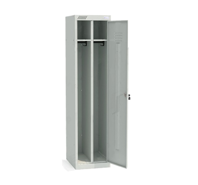 В модели 1 отделение, разделенное перегородкой на 2 секции. Шкаф запирается одной дверью.