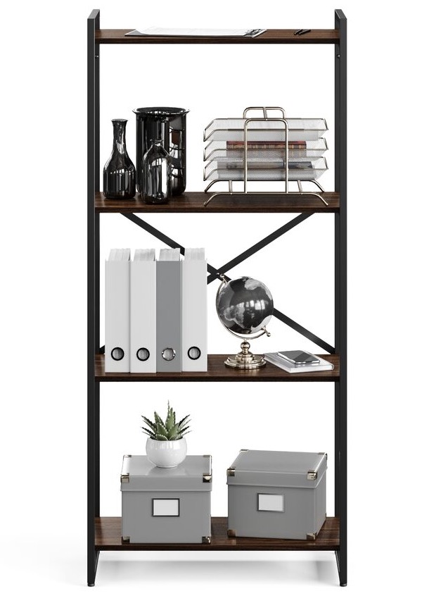 Стеллаж GUTTA 151х69х34 см — это стильное решение для вашего интерьера в стиле лофт ( loft ). Он отличается прочностью и надежностью благодаря прочному трубному каркасу, который обеспечивает дополнительную жесткость конструкции. В комплекте идут четыре полки из ЛДСП толщиной 16 мм, которые представлены в цветах коричневый, патина и эвок. Каркас стеллажа выполнен в черном цвете. Высота стеллажа составляет 151 см, ширина — 69 см, глубина — 34 см.