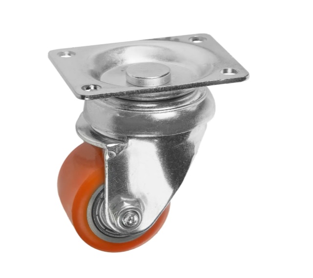 Колесики для мебели промышленной диаметром 35 мм и грузоподъемностью 100 кг. Колесо большегрузное имеет стальной сердечник с полиуретановой шинкой жесткостью 93 шор А, высокая устойчивость к износу и сопротивляемости усилию на разрыв. В ступице колеса расположен шариковый подшипник.