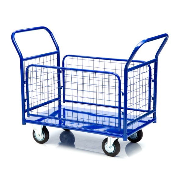 Платформенная 4-х колесная тележка с сетчатыми бортами КПО-550С-200-И используется для транспортировки различных сборных грузов на оптовых базах и складах. Размер платформы 800х1200мм., Металлический борт-сетка, с ячейками 50х50мм., защищает груз от падения и ударов, что позволяет перевозить хрупкие предметы и сборные грузы. Ручки и борта тележки снимается для удобства транспортировки и компактного хранения. Высота боковых сетчатых бортов 480мм., высота борта от платформы 500мм., высота ручки 750мм., Платформа имеет уникальную рельефную, полимерную, противоскользящую поверхность. Цвет — синий, шагрень. Для легкого перемещения тележка комплектуется: двумя поворотными и двумя неповоротными промышленными колесами, диаметром 200мм., из черной стандартной резины, от всемирно известного, ведущего итальянского производителя Tellure Rota, метизами для крепления. Грузоподъемность до 690кг.