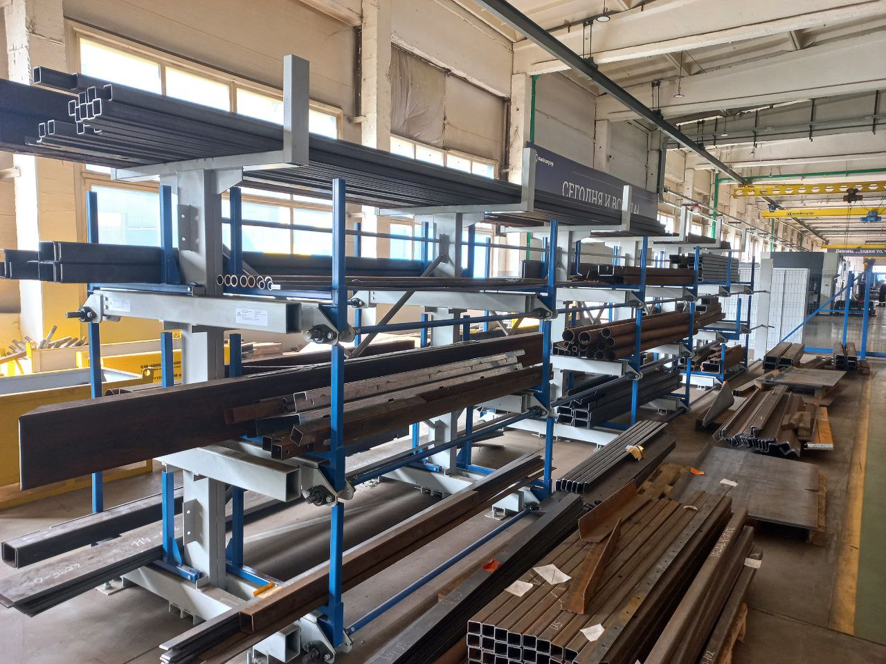 В сентябре 2024 года для крупного производственного предприятия в Дзержинске была выполнена поставка консольных стеллажей с выдвижными консолями в нестандартной комплектации. Такое решение позволило значительно повысить удобство и безопасность хранения длинномерного металлопроката, обеспечив лёгкий доступ к материалам и рациональное использование производственного пространства.